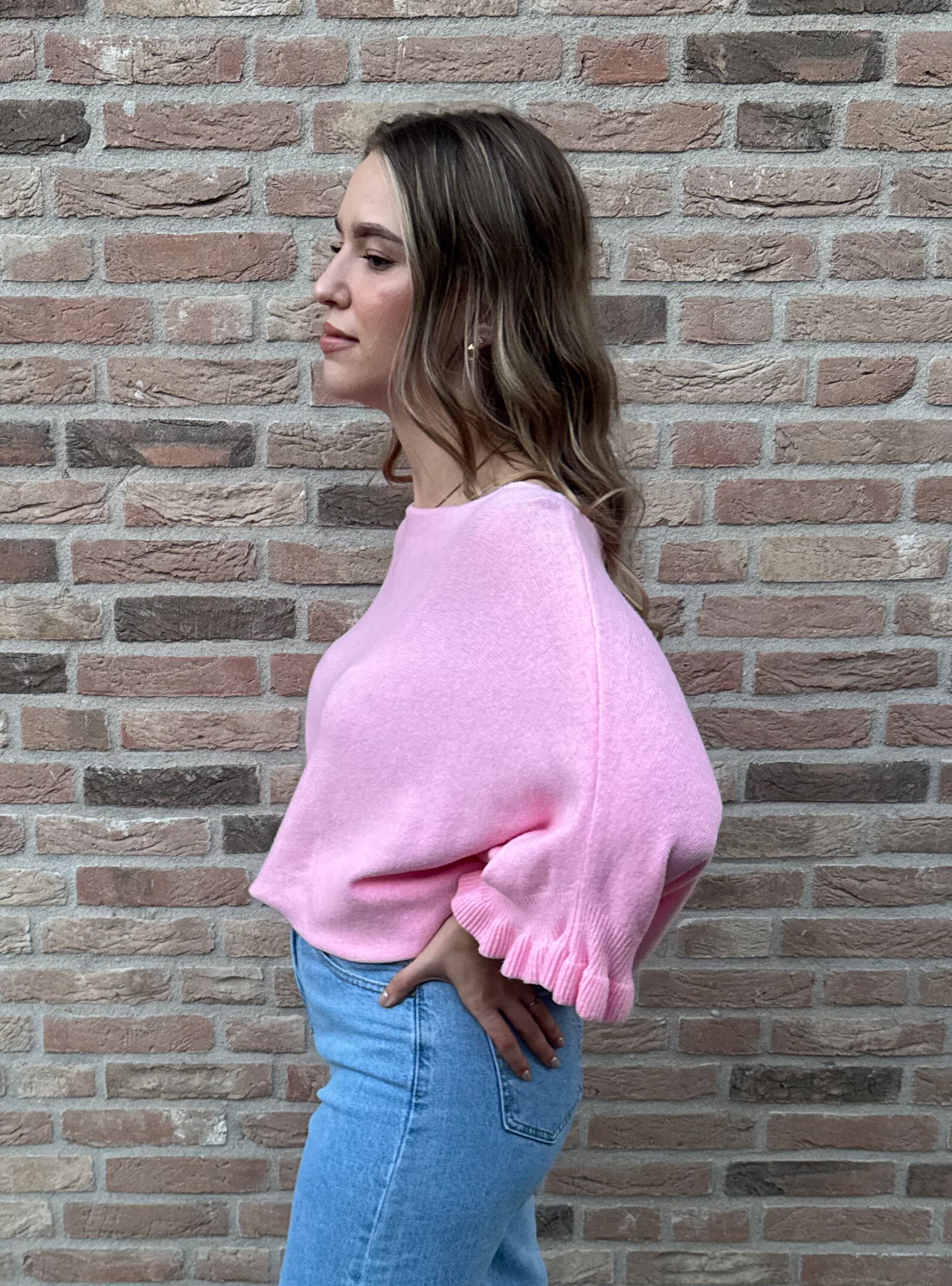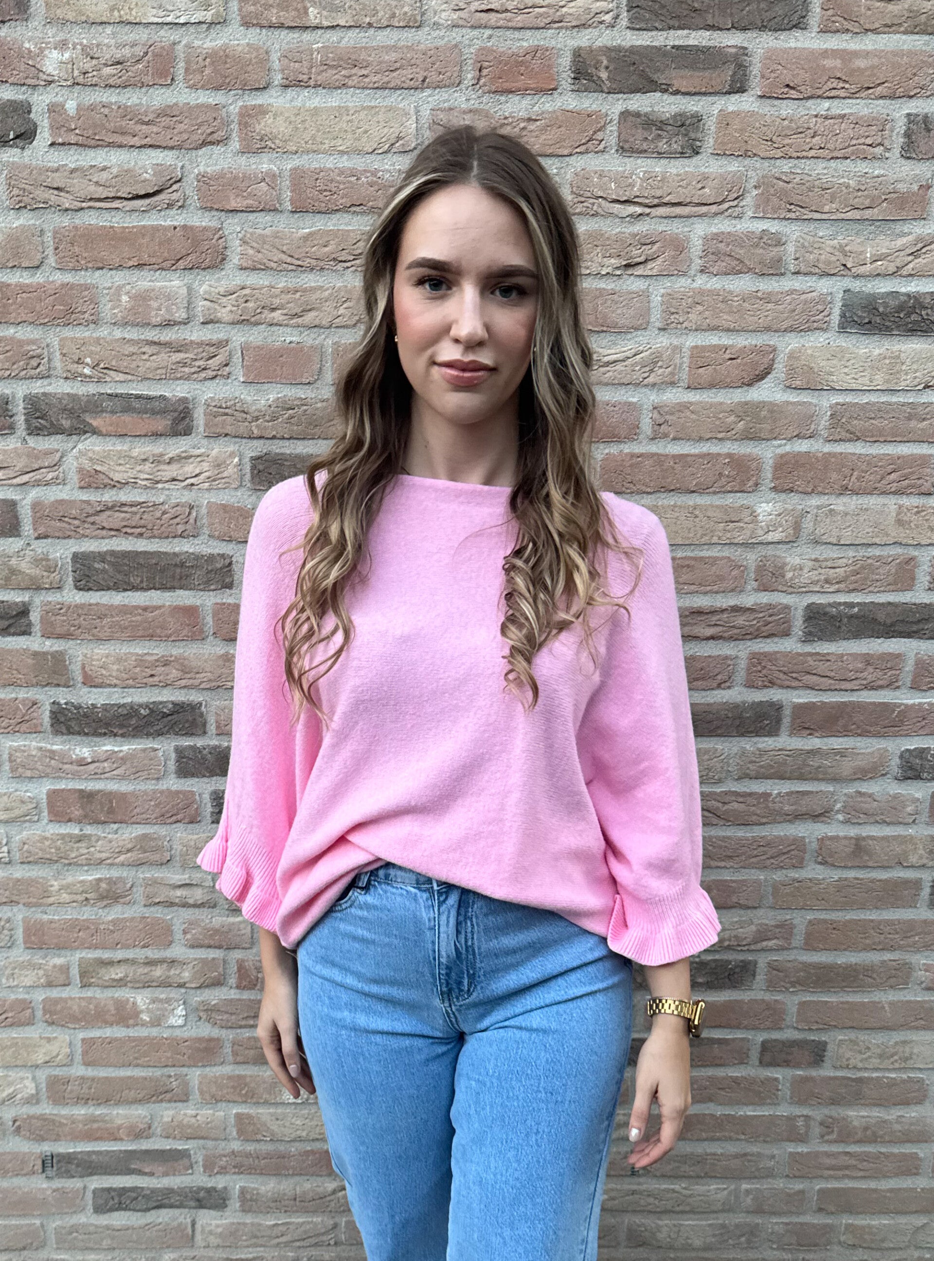 Trui met ruffle detail mouw - roze