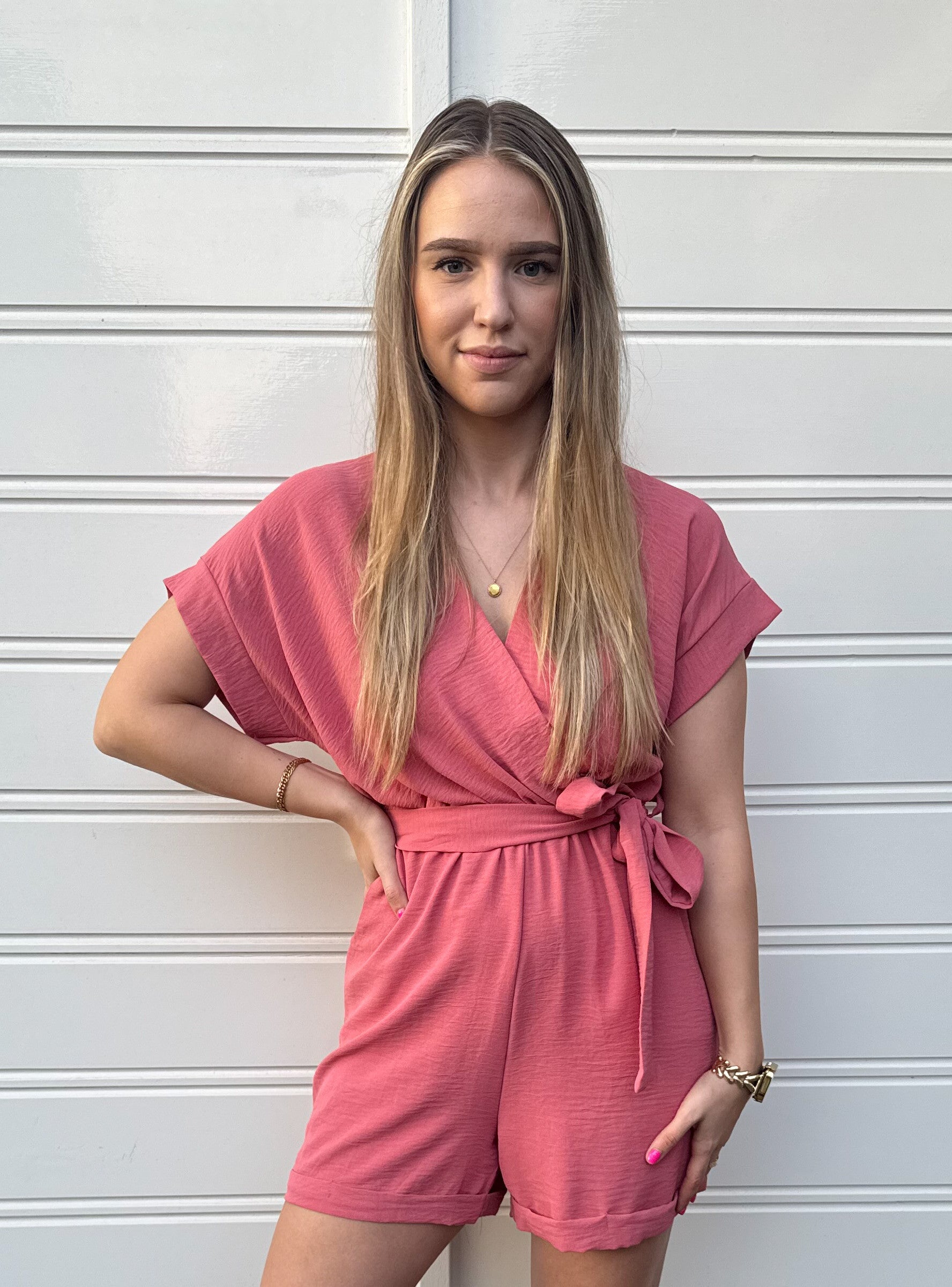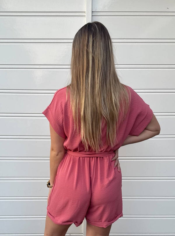 Het model is 167 cm lang en draagt de maat S/M. De jumpsuit is verkrijgbaar in de maten S/M en L/XL.