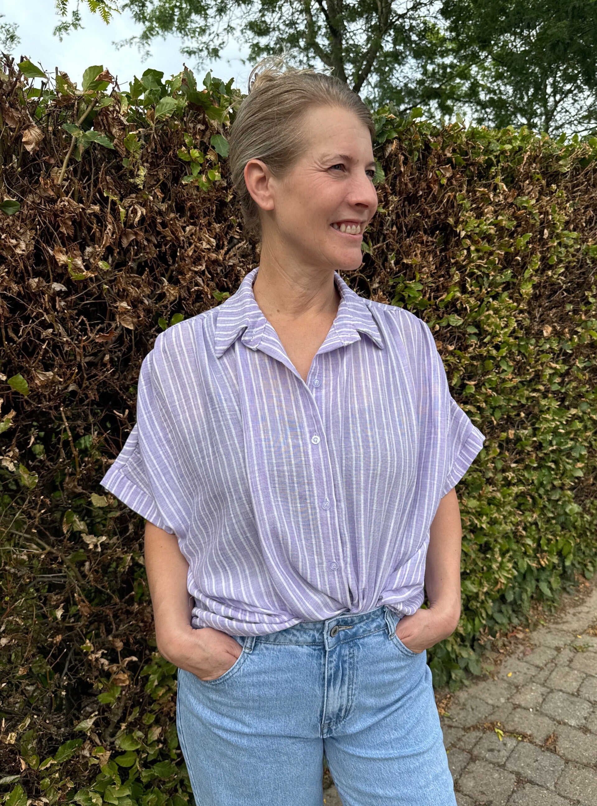 Het model is 167 cm lang en draagt een maat one size. De top is te dragen tot en met maat 48.