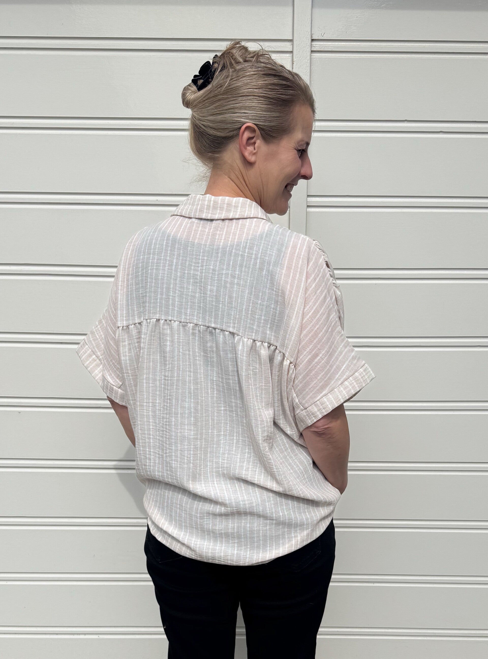 Het model is 167 cm lang en draagt een maat one size. De top is te dragen tot en met maat 48.