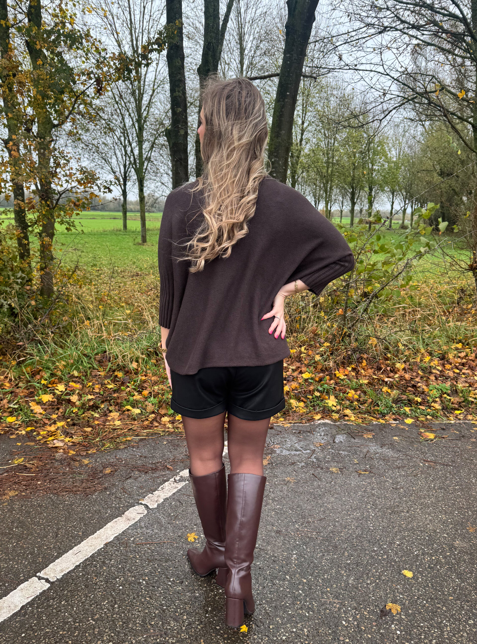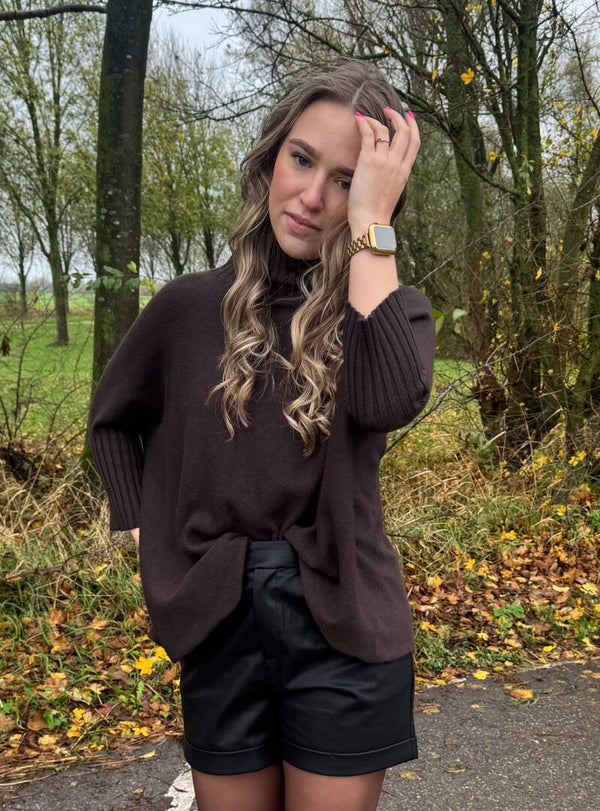 Het model is 167 cm lang en draagt de maat One Size. De trui is te dragen tot en met maat 44.