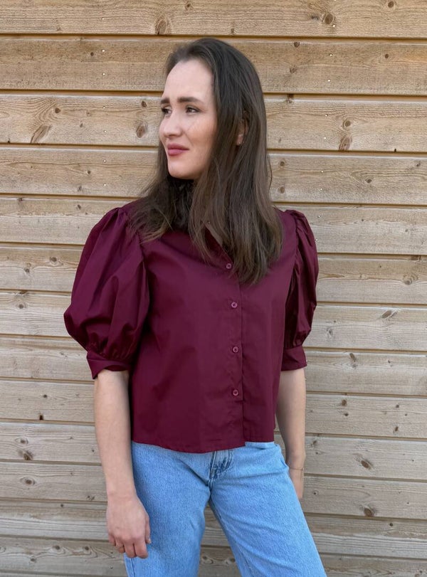 Blouse korte pofmouw - bordeauxrood