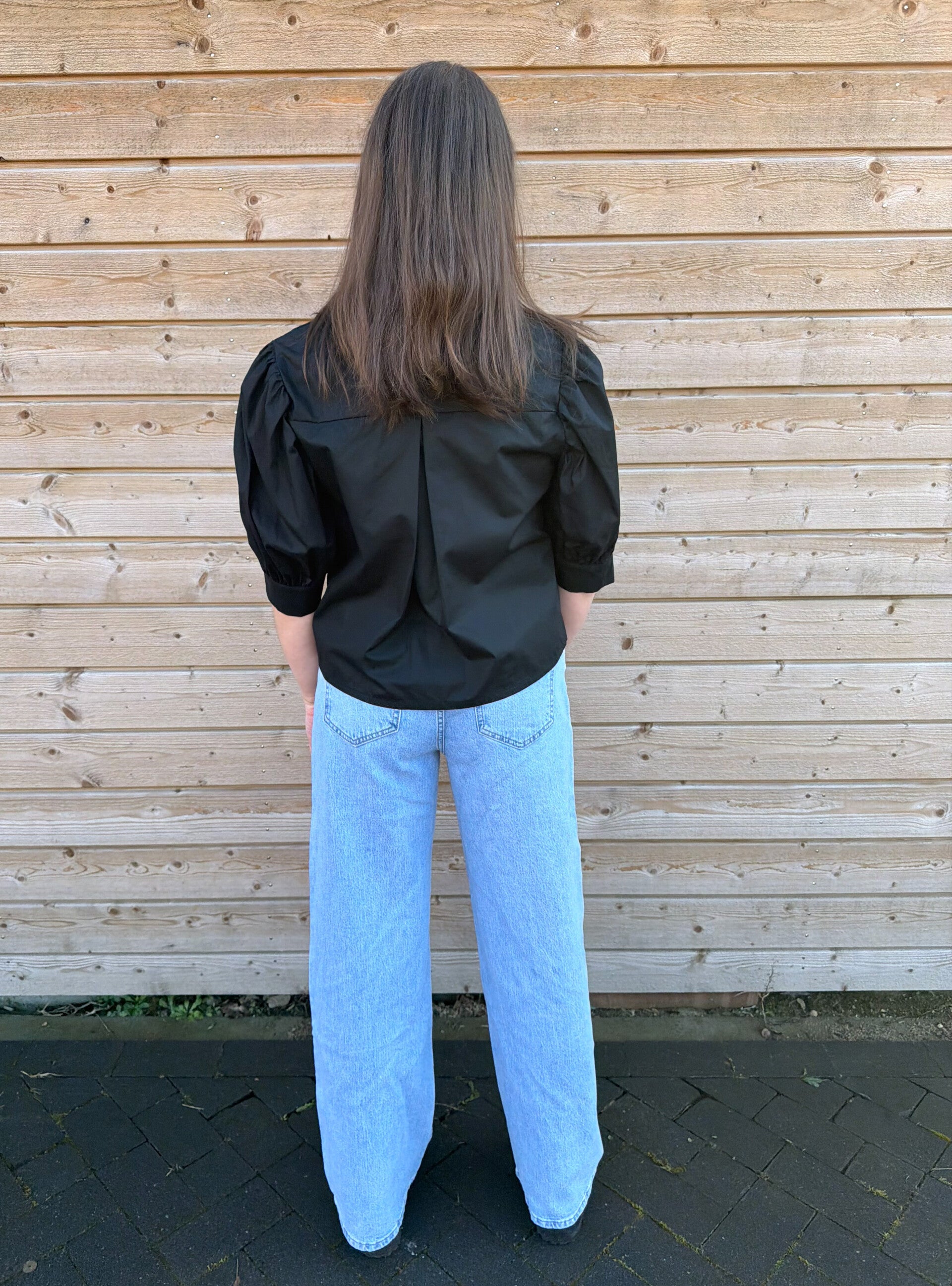 Blouse korte pofmouw - zwart
