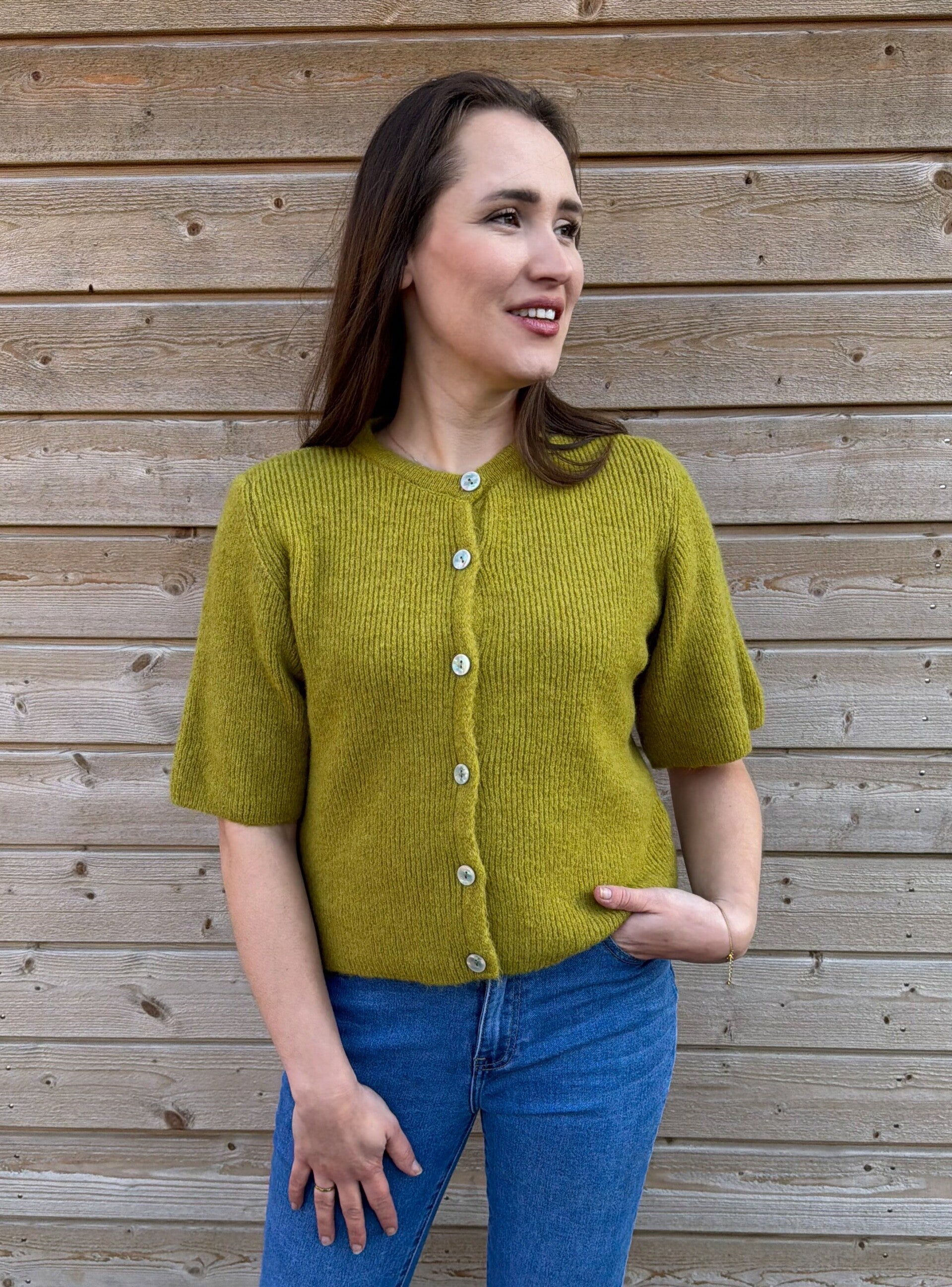Het model is 172 cm lang en draagt een maat one size. Het vest is te dragen tot en met maat 42.