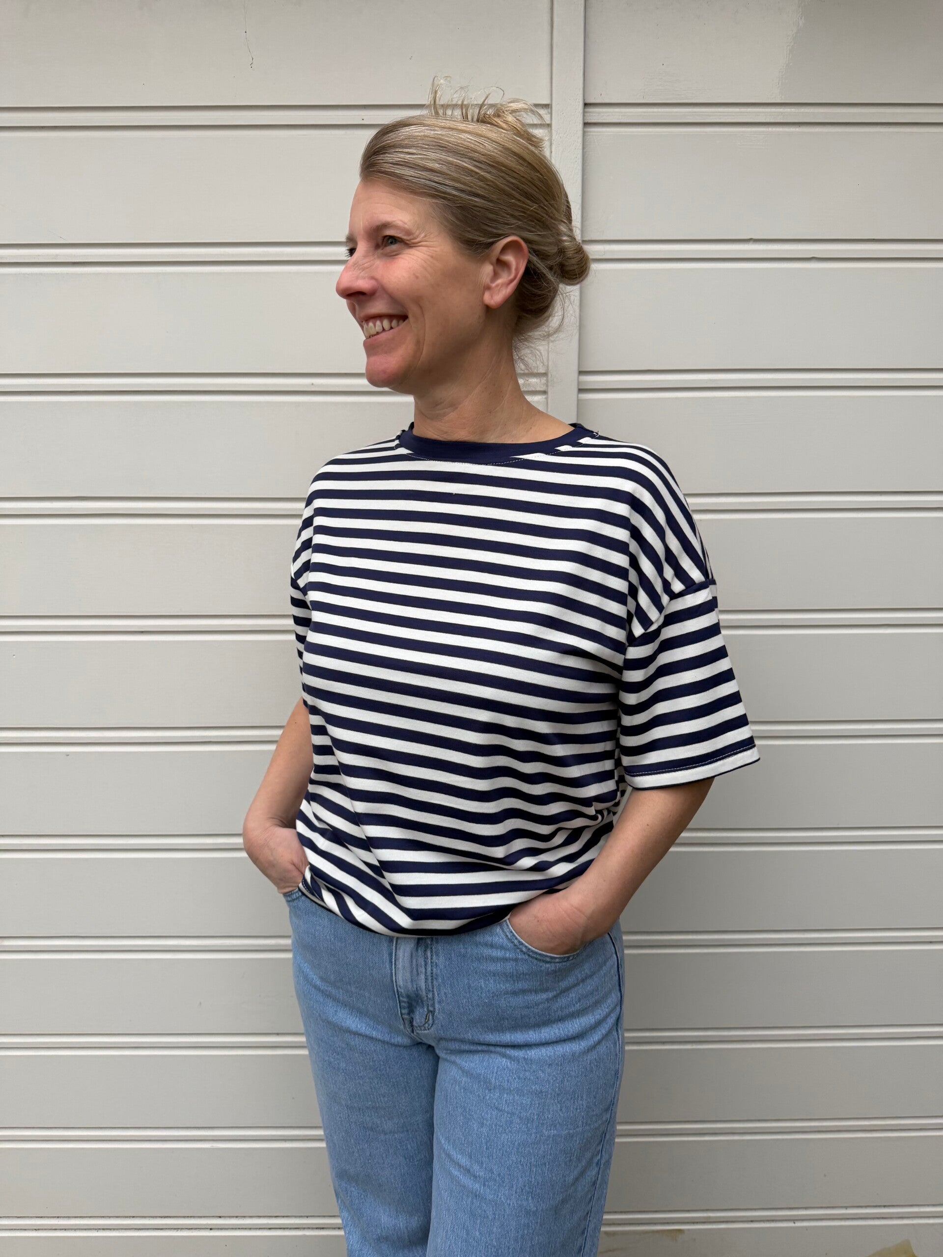 Top streep korte mouw - wit/blauw