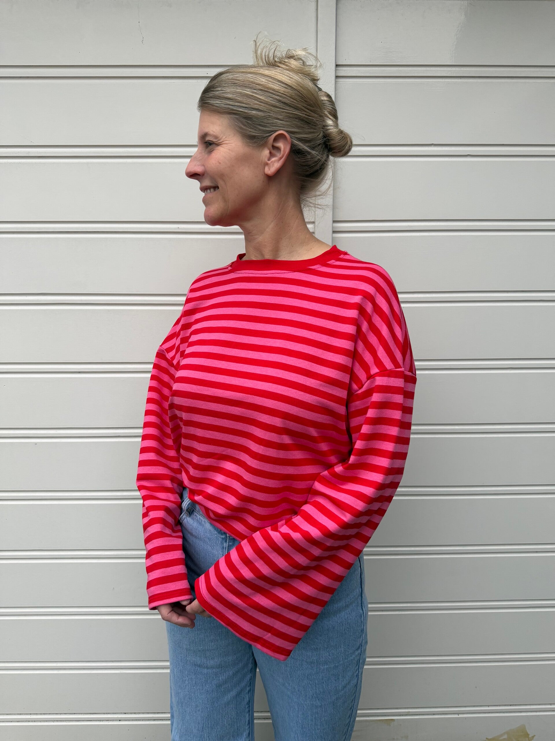 Top streep lange pofmouw - bruin/roze